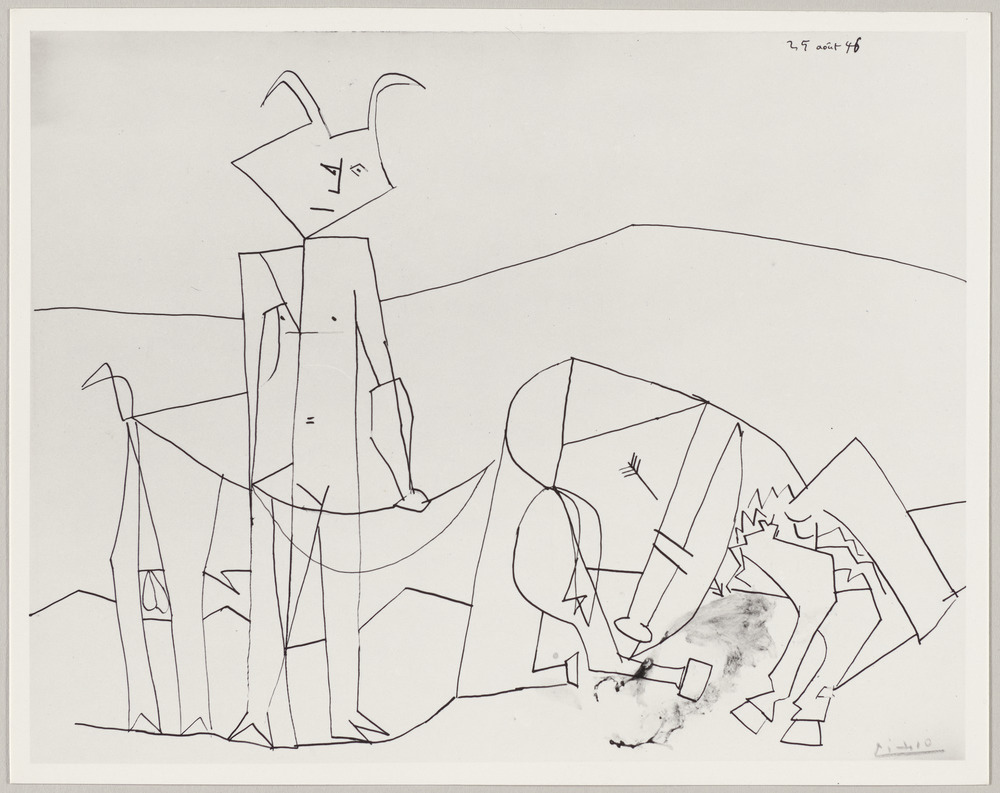 Dessin à l'encre de chine "La mort du centaure", Golfe-Juan, 25-26 août 1946