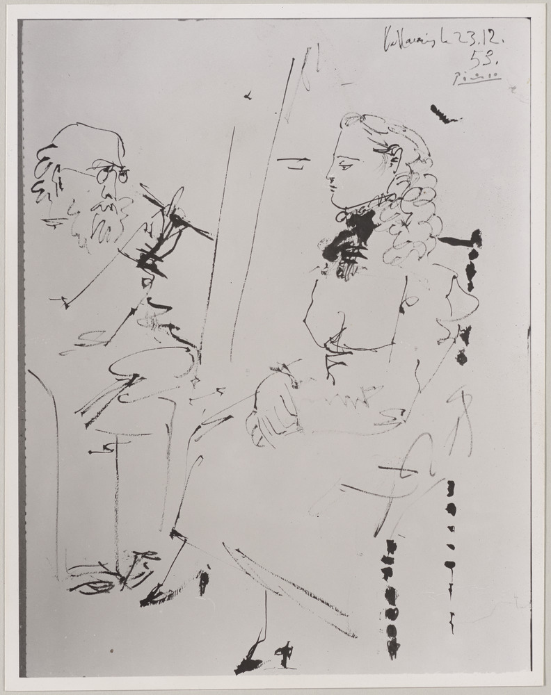 Dessin à l'encre de chine "Peintre et modèle", Vallauris, 23 décembre 1953
