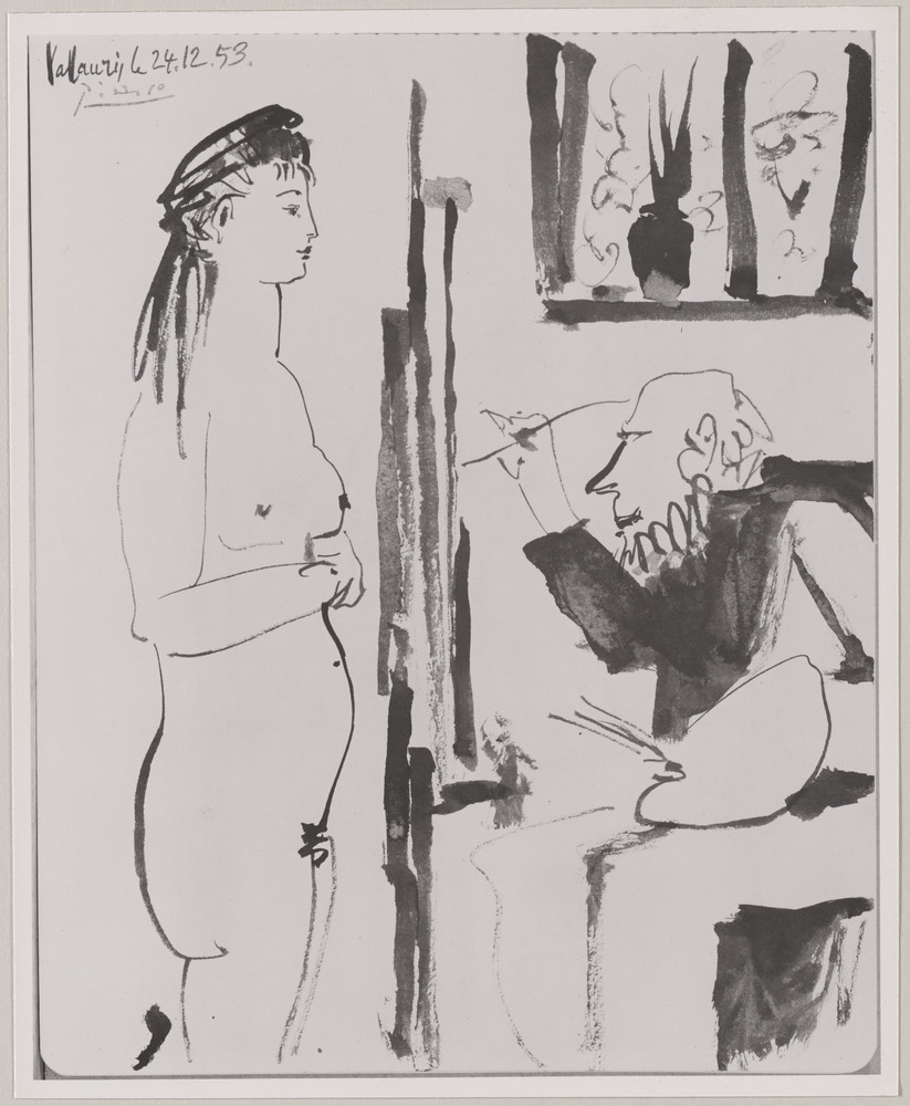 Dessin à l'encre de chine "Peintre et modèle", Vallauris, 24 décembre 1953