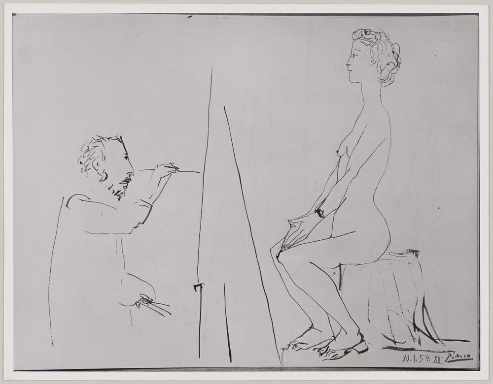 Dessin à l'encre de chine "Peintre et son modèle", 10 janvier 1954
