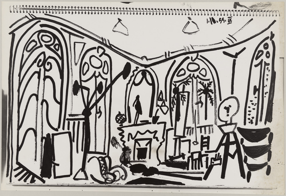 Copié dans le presse-papier :Dessin à l'encre de Chine sur page de carnet "L'atelier" IX, 1er novembre 1955 - s.d. - https://cep.museepicassoparis.fr/explorer/dessin-lencre-de-chine-sur-page-de-carnet-latelier-ix-1er-novembre-1955-apph15031