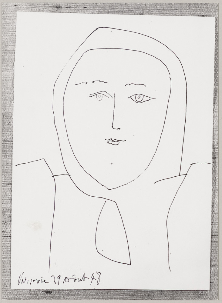 Dessin à l'encre de chine [Tête de femme], Varsovie, 29 août 1948