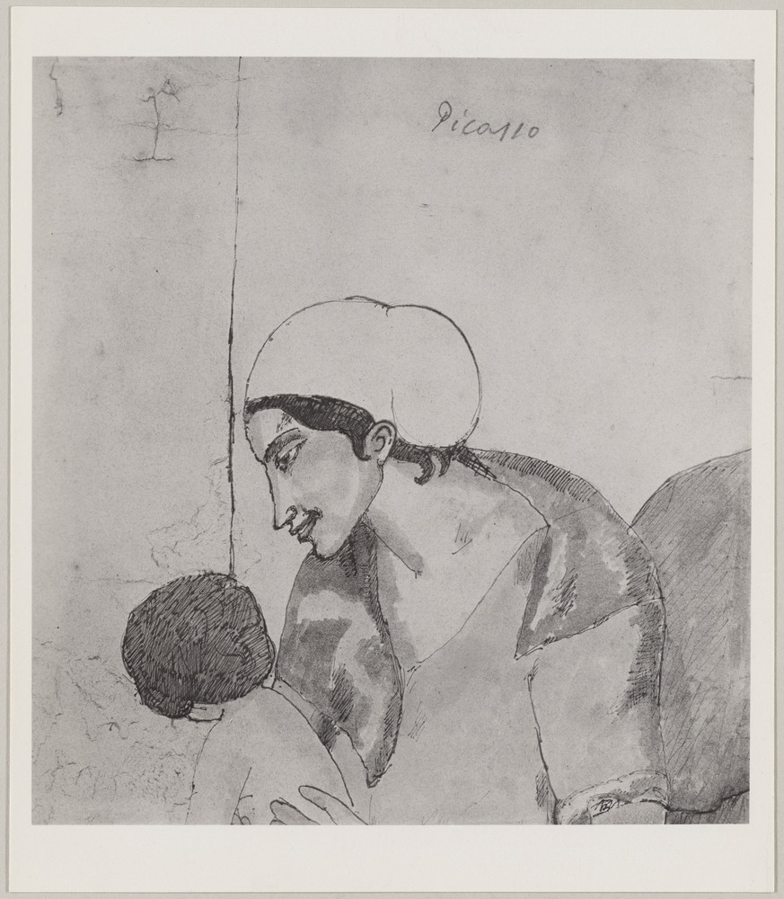 Dessin à l'encre et à l'aquarelle [Femme et enfant], 1901
