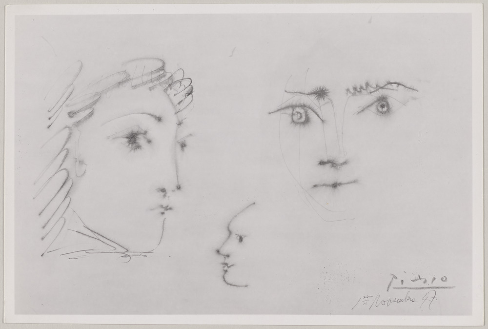 Dessin à [l'encre] [Trois visages de femme], 1er novembre 1947