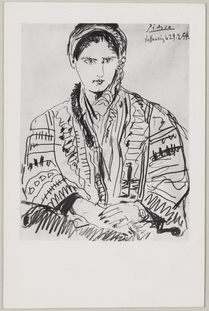Dessin [Portrait de jeune femme], Vallauris, 27 février 1954