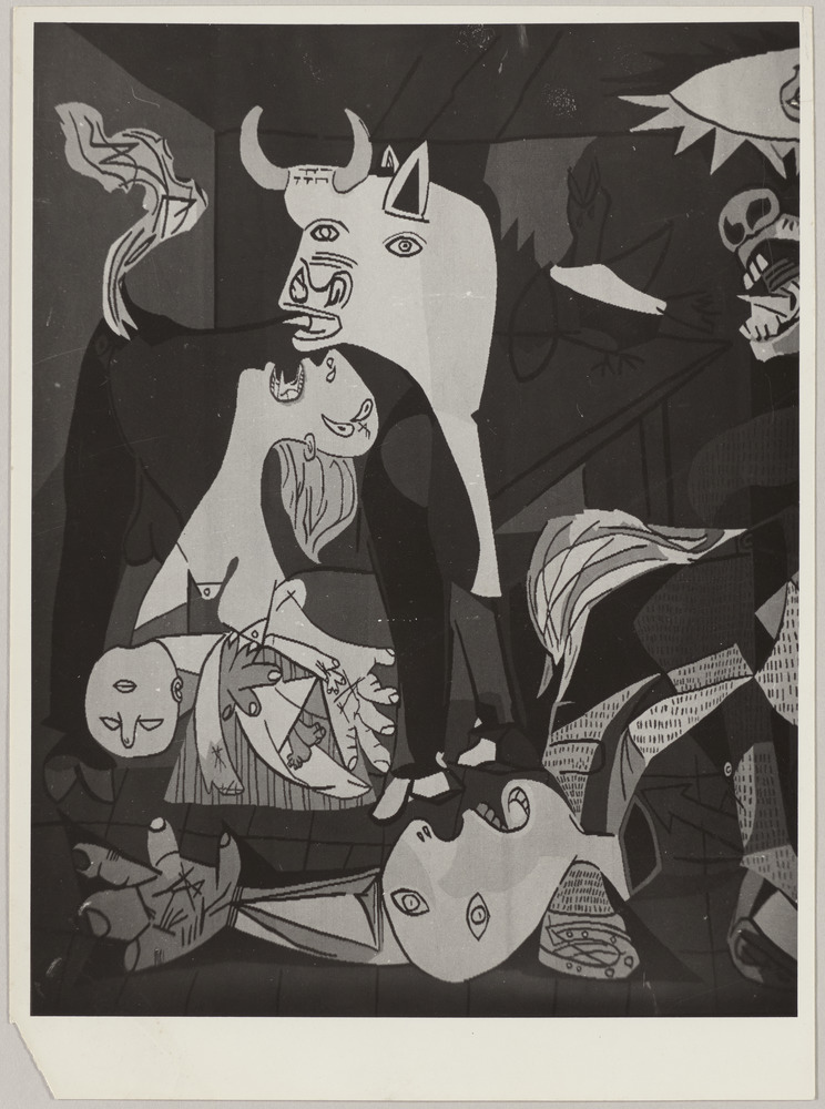Détail de la tapisserie réalisée par l'atelier de Jacqueline de la Baume-Dürrbach d'après l'huile sur toile "Guernica" de Pablo Picasso