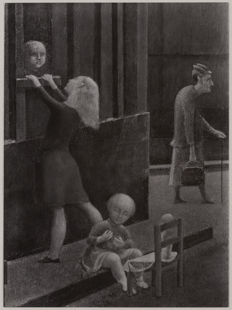 Détail de l'huile sur toile "Passage du Commerce-Saint-André" de Balthus, 1954