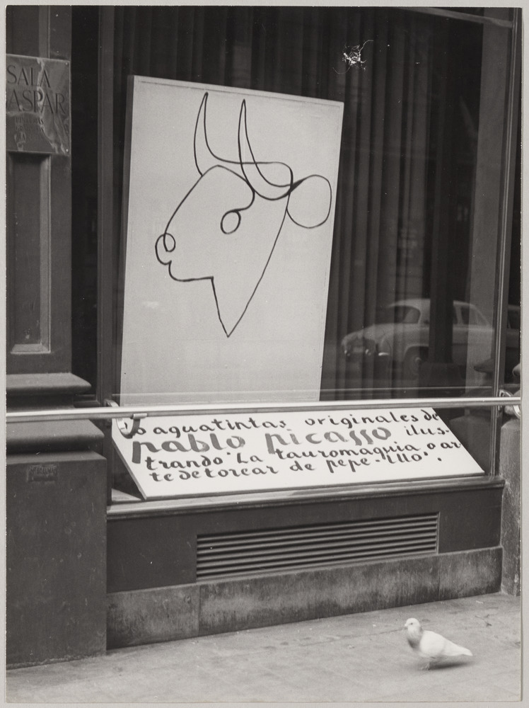 Devanture de l'exposition "Aquatintas originales de Pablo Picasso illustrando "La tauromaquia o arte de torear de Pepe Illo" à la Sala Gaspar, Barcelone, le 11 janvier 1960