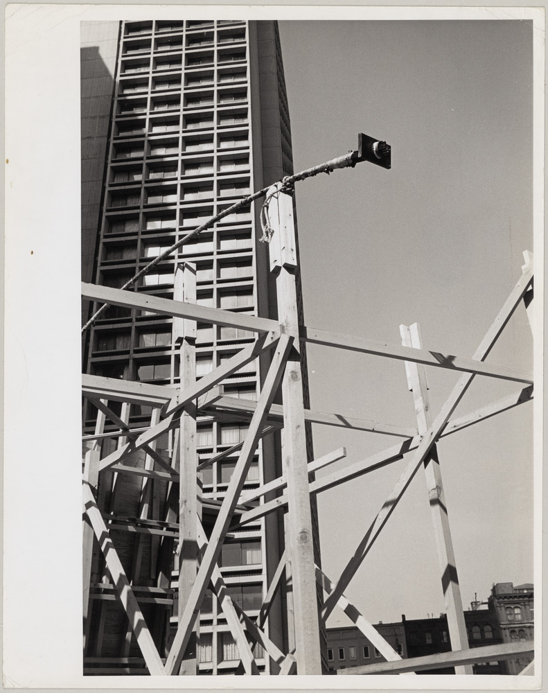 Echafaudage de la sculpture "Sylvette", New-York University, en 1968