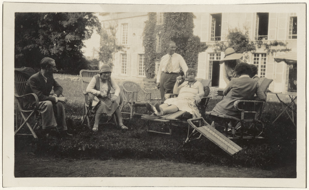 Elie et Berthe Lascaux, Daniel-Henry et Lucie Kahnweiler, Olga Picasso, femme non identifiée et Jeanne Godon au Château de Boisgeloup, Gisors, circa 1931