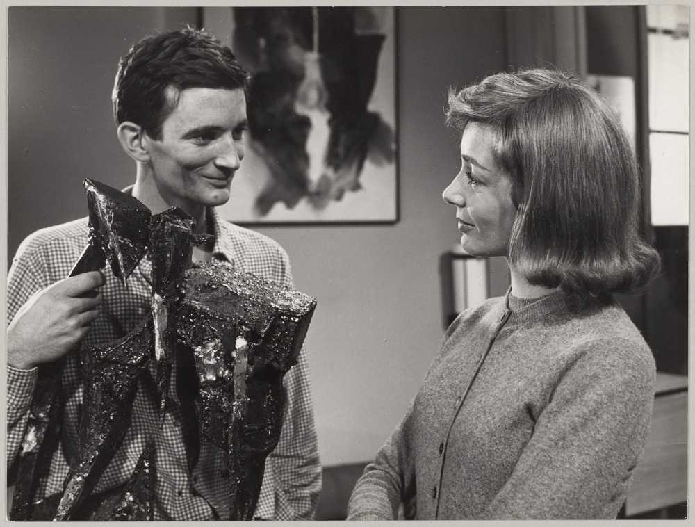 Emmanuelle Riva et un acteur dans le film "Le Huitième jour" de Michel Hanoun, en 1960