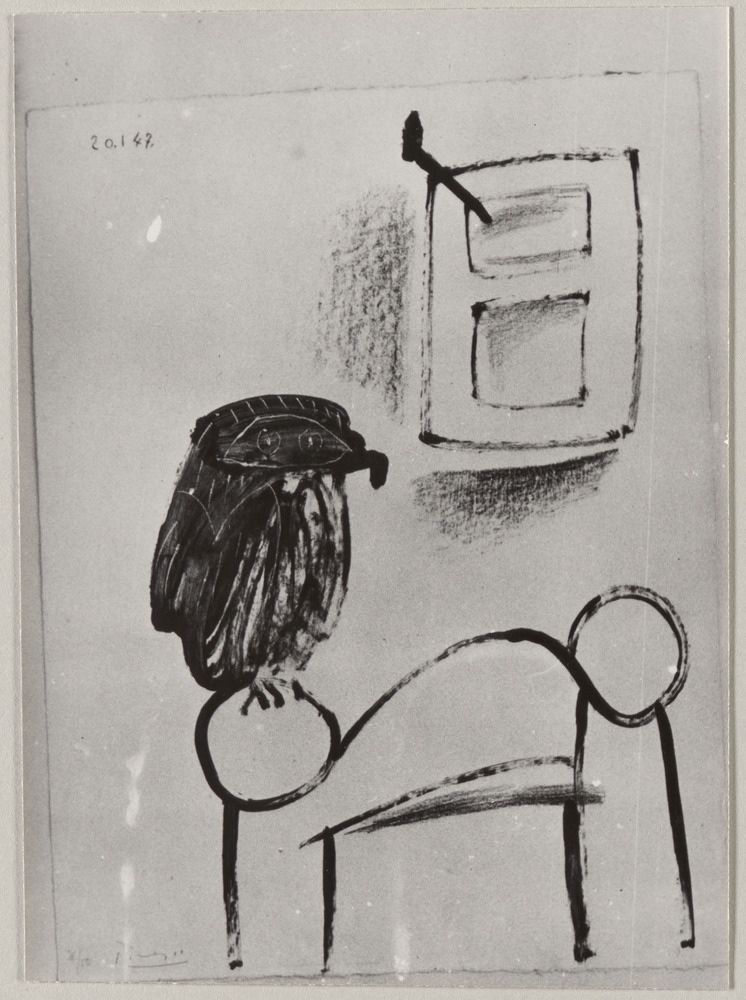 Estampe "Chouette" datée du 20 janvier 1947 présentée à l'exposition "Pablo Picasso" de Lübeck, en juillet-août 1949