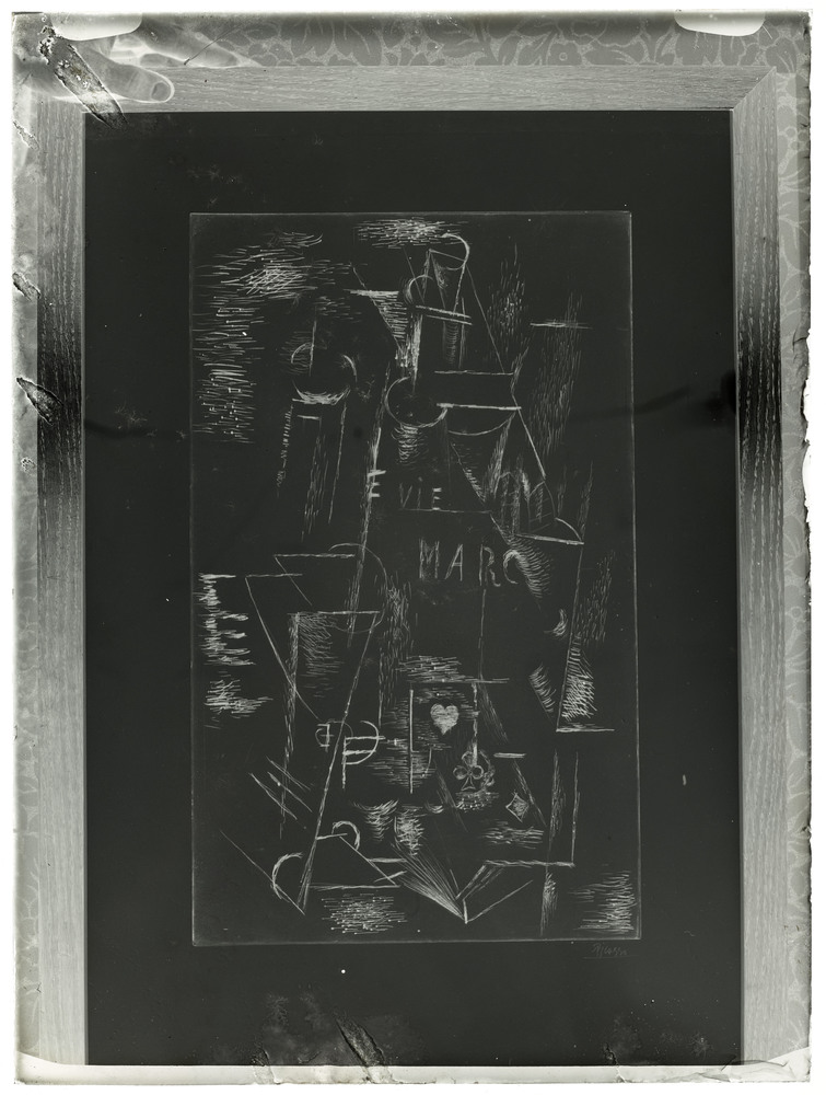 Estampe "Nature morte à la bouteille de marc" d'août-automne 1911