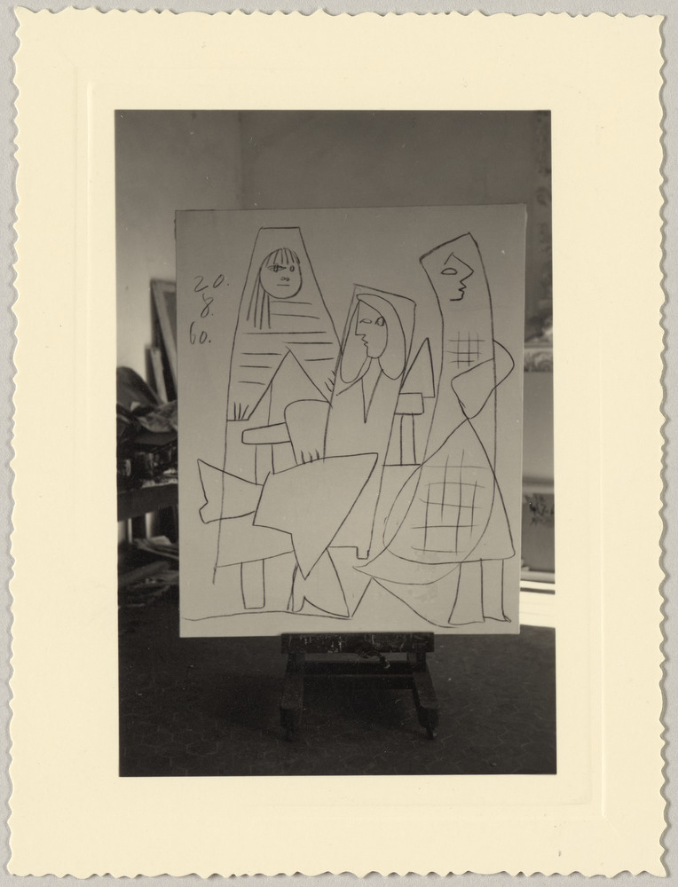 Etude de dessin pour "Femme et fillettes" du 20 août 1960 et posé sur un chevalet à Vauvenargues