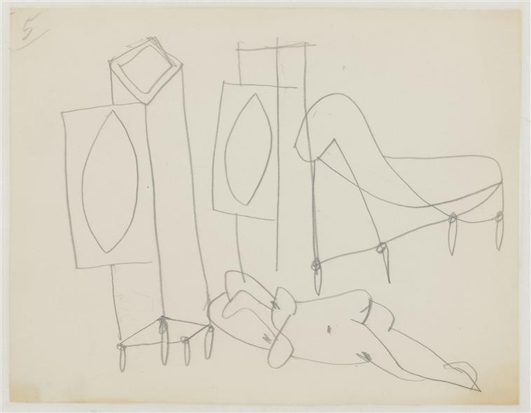 Étude pour "L'Aubade": armoire à glace, méridienne et femme nue étendue