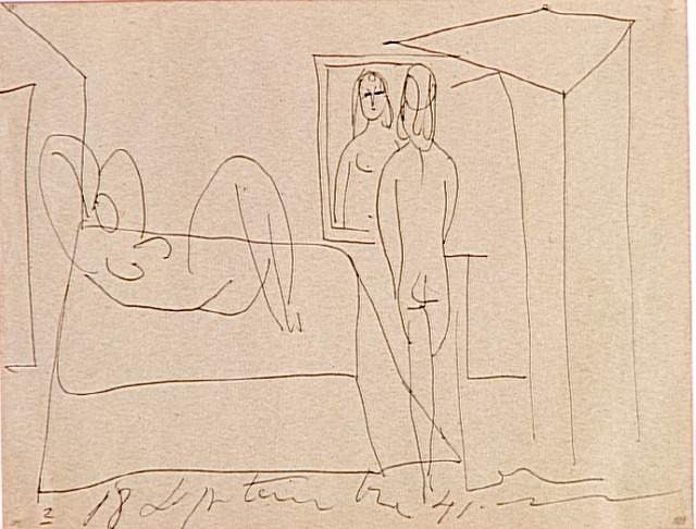 Copié dans le presse-papier :Étude pour "L'Aubade": le miroir - Pablo Picasso - 18 septembre 1941 - https://cep.museepicassoparis.fr/explorer/etude-pour-laubade-le-miroir-mp1250