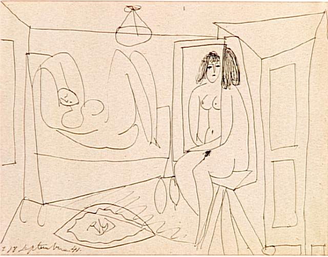 Copié dans le presse-papier :Étude pour "L'Aubade": le miroir - Pablo Picasso - 18 septembre 1941 - https://cep.museepicassoparis.fr/explorer/etude-pour-laubade-le-miroir-mp1256