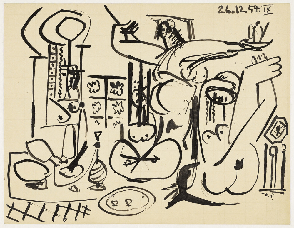 Copié dans le presse-papier :Étude pour "Les Femmes d'Alger", d'après Delacroix - Pablo Picasso - 26 décembre 1954 - https://cep.museepicassoparis.fr/explorer/etude-pour-les-femmes-dalger-dapres-delacroix-mp1441