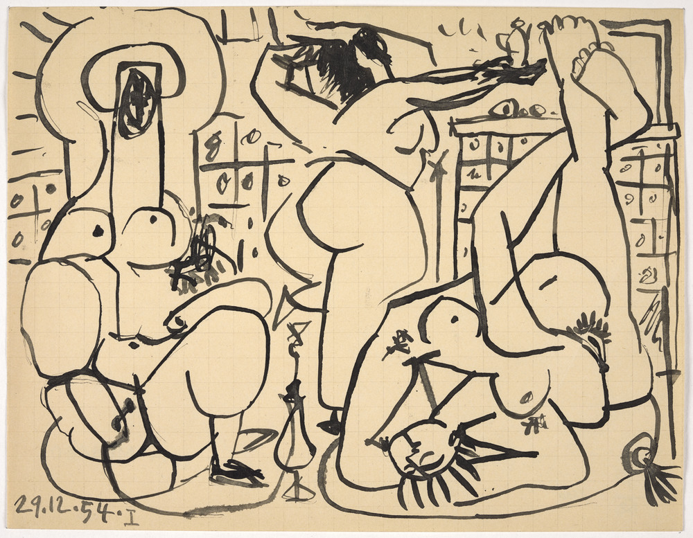 Copié dans le presse-papier :Étude pour "Les Femmes d'Alger", d'après Delacroix - Pablo Picasso - 28 décembre 1954 - https://cep.museepicassoparis.fr/explorer/etude-pour-les-femmes-dalger-dapres-delacroix-mp1460