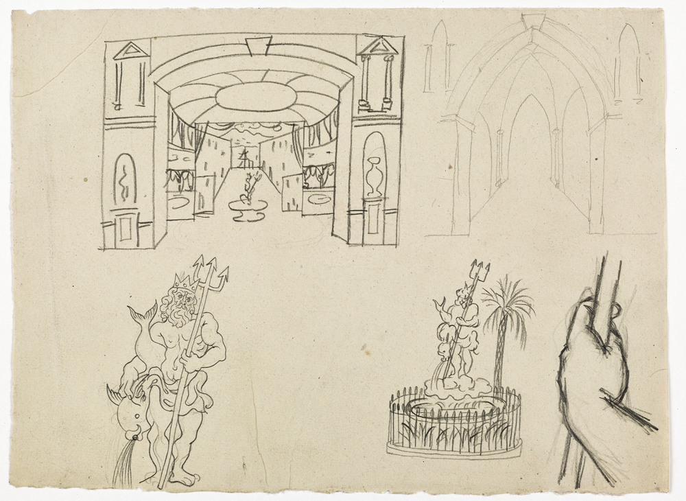 Études d'éléments de décor pour le ballet Pulcinella: la fontaine de Neptune