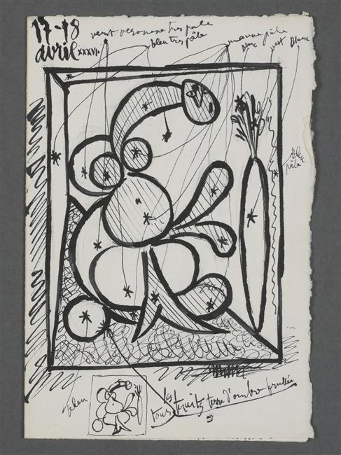 - Auteur(s)TitreÉtudes: "Femme au vase de fleurs" avec annotations manuscrites de couleursDate17 avril 1936 - 18 avril 1936Type de supportDessinNuméro d'inventaireMP1156 (r)Auteur(s)TitreÉtudes: "Femme au vase de fleurs" avec annotations manuscrites de couleursDate de création17 avril 1936 - 18 avril 1936Lieu de créationJuan-les-PinsType de supportDessinTechniqueEncre et crayon graphite sur feuille de papier, pliée en deuxDimensions25,3 x 17,5 cmMarque / InscriptionsD.H.G. : 17-18 / avril XXXVI.DescriptionPage 1 d'une feuille de papier pliée en deux