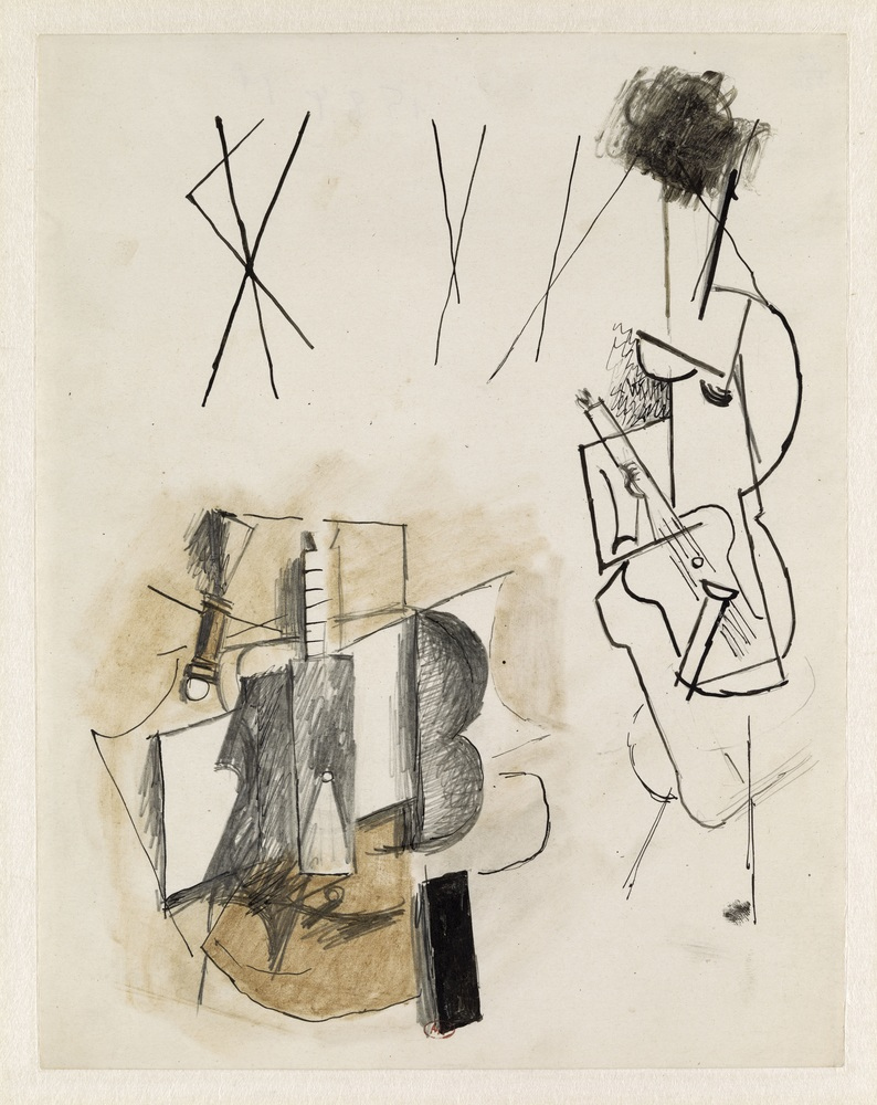 Copié dans le presse-papier :Études pour "Guitare et bouteille de Bass" - Pablo Picasso - 1913 - https://cep.museepicassoparis.fr/explorer/etudes-pour-guitare-et-bouteille-de-bass-mp709