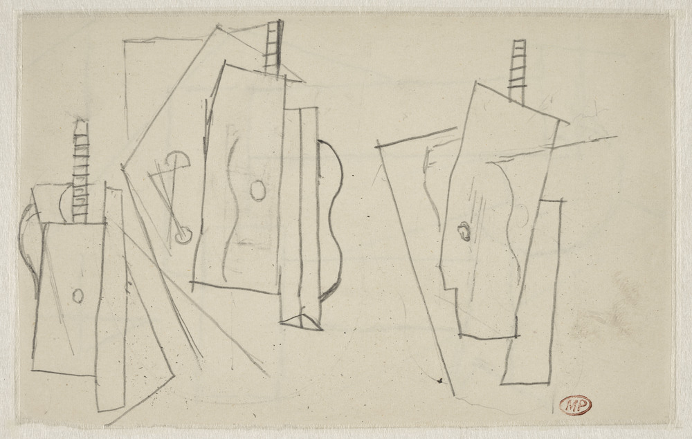 Copié dans le presse-papier :Études pour "Guitare et bouteille de Bass" - Pablo Picasso - 1913 - https://cep.museepicassoparis.fr/explorer/etudes-pour-guitare-et-bouteille-de-bass-mp716-r