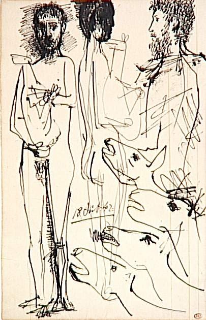 Copié dans le presse-papier :Études pour "L'Homme au mouton" - Pablo Picasso - 18 août 1942 - https://cep.museepicassoparis.fr/explorer/etudes-pour-lhomme-au-mouton-mp1290