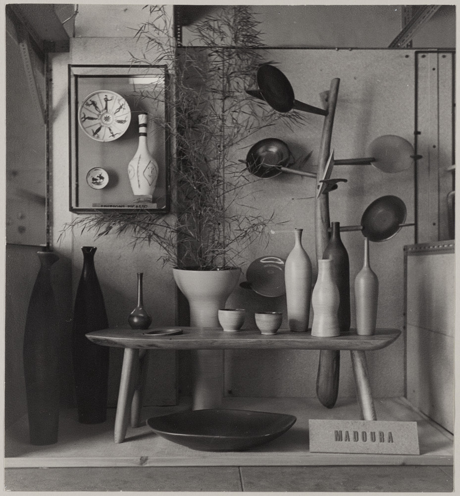 Exposition de céramiques au Nérolium de Vallauris, en 1956