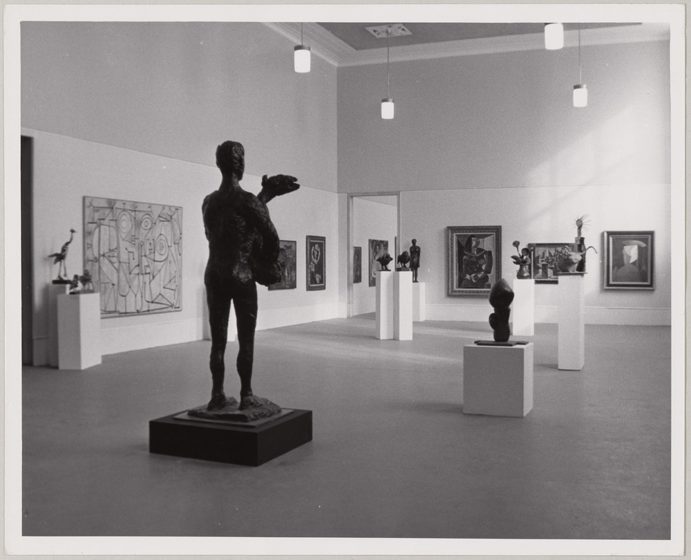 Exposition "Picasso : A loan of His Paintings, Drawings, Sculpture, Ceramics, Prints and Illustrated Books" avec la sculpture en bronze "L'Homme au mouton", au Philadelphia Museum Of Art, Philadelphie, en janvier-février 1958