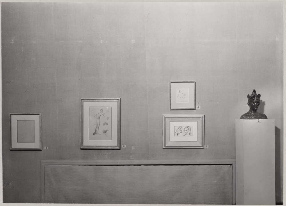 Présentes sur la photographie la sculpture en bronze "Le Fou" (MP231) et des dessins autour de 1905-06