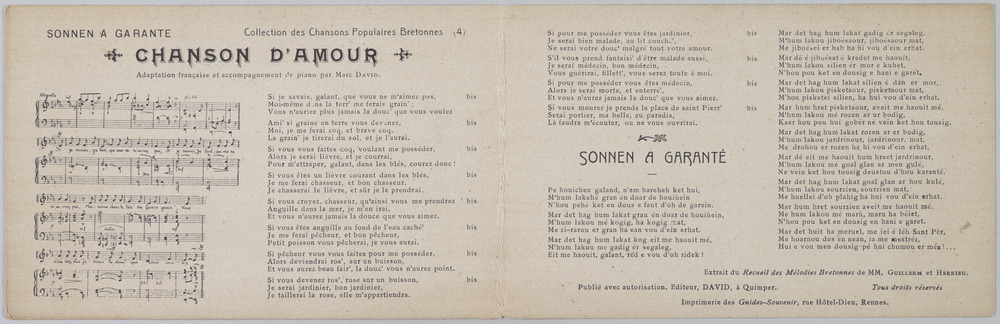 Extrait "Chanson d'amour" de la collection des chansons populaires bretonnes