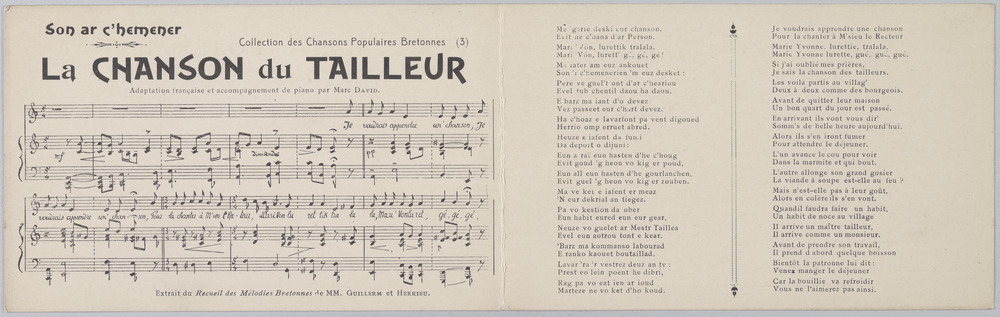 Extrait "La Chanson du tailleur" de la collection des chansons populaires bretonnes