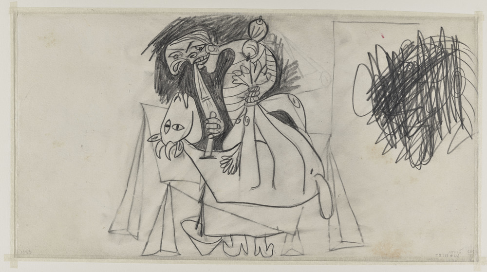 Copié dans le presse-papier :Femme sacrifiant une chèvre et esquisse raturée - Pablo Picasso - 1938 - https://cep.museepicassoparis.fr/explorer/femme-sacrifiant-une-chevre-et-esquisse-raturee-mp1205-v
