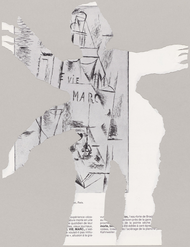 Papier faisant partie d'un ensemble de découpages et de déchirures réalisés à partir de photocopies de textes et de dessins de Pablo Picasso et mis en transparence sur papier photographique pour illustrer le "Désir attrapé par la queue", commande du professeur Jean Amiel