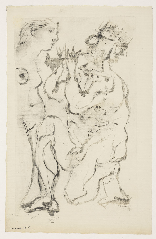 Ce monotype a été tiré sur le IIIème état de "Flûtiste et femme nue", pointe sèche et grattoir sur cuivre, 23 juillet 1932 (MP2181), cat. Geiser - Baer 260.