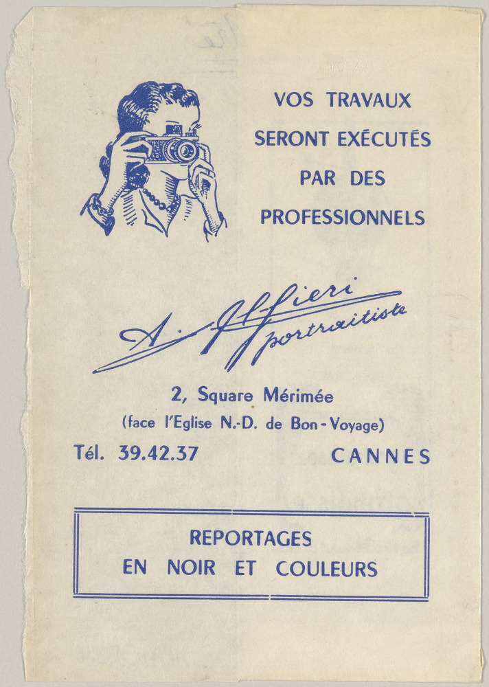 Copié dans le presse-papier :Fragment de pochette du laboratoire de développement photographique A. Alfieri - s.d. - https://cep.museepicassoparis.fr/explorer/fragment-de-pochette-du-laboratoire-de-developpement-photographique-alfieri-apph18216