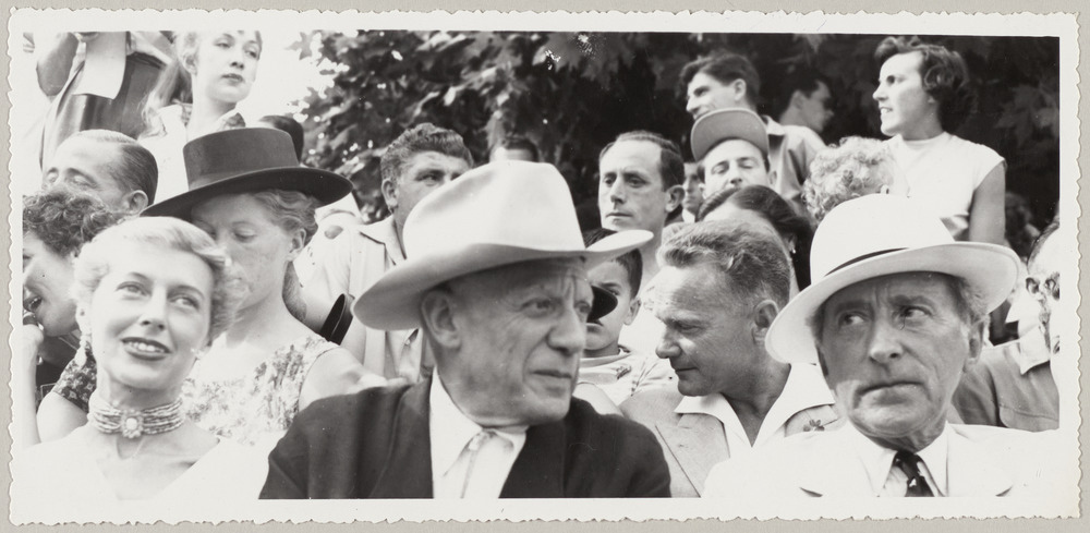 Francine Weisweiller, Pablo Picasso et Jean Cocteau à la corrida de Vallauris, début août 1956