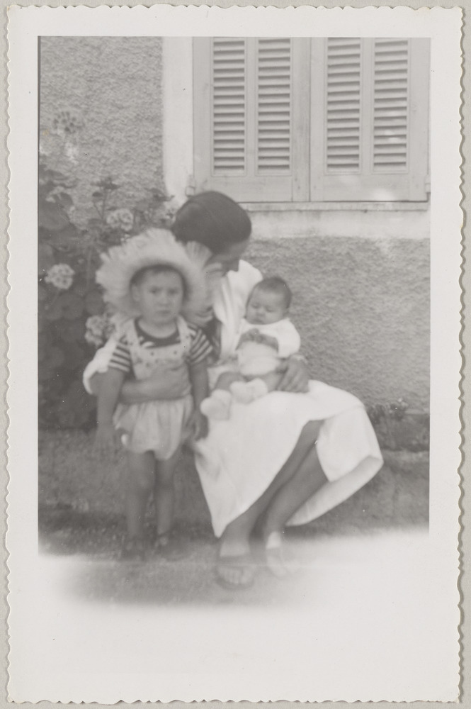 Françoise Gilot avec ses enfants, Paloma et Claude, dans le jardin de La Galloise, Vallauris, printemps-été 1949