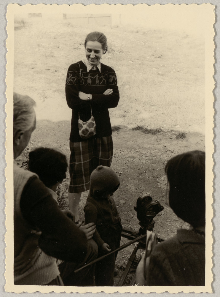 Françoise Gilot et Claude dans la cour de l'atelier du Fournas lors du tournage de "La mort de Charlotte Corday" de Frédéric Rossif, Vallauris, en septembre-octobre 1950