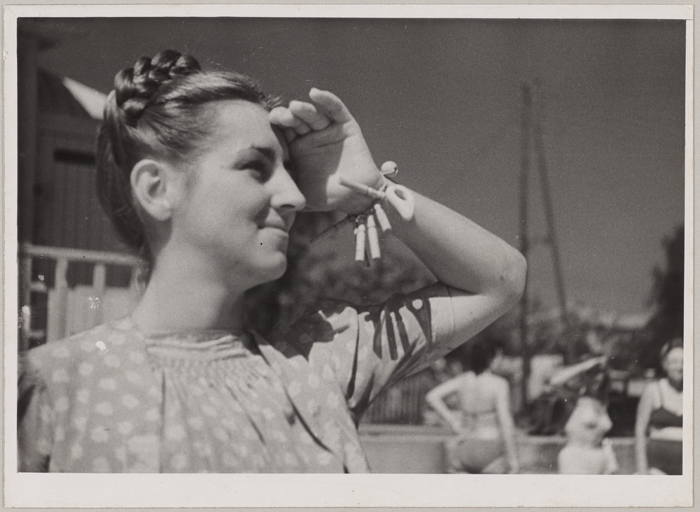 Françoise Gilot regardant au loin sur la plage de Golfe-Juan, fin des années 1940