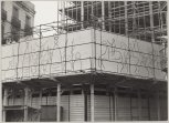 Frises bétogravées de Carl Nesjar d'après des dessins de Pablo Picasso édifiées sur la façade du Collège des architectes de Catalogne en travaux, à Barcelone