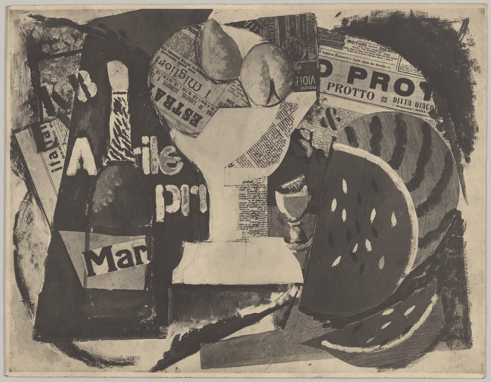 Gouache et papiers collés avec des coupures de journaux italiens de [1931]