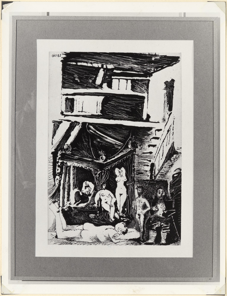 Gravure du 28 mai 1968 présentée à l'exposition "Picasso 347 gravures 1968" à la Galerie Louise Leiris, 18 décembre 1968 - 1er février 1969