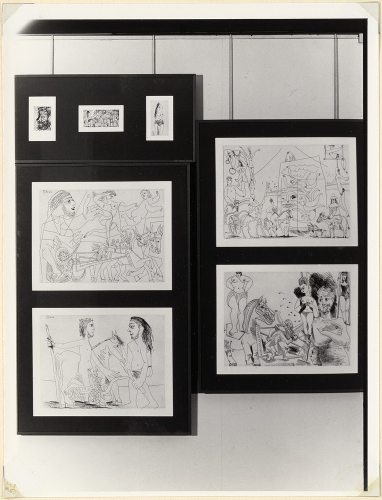 Gravures du 11 avril 1968 présentées à l'exposition "Picasso 347 gravures 1968" à la Galerie Louise Leiris, 18 décembre 1968 - 1er février 1969
