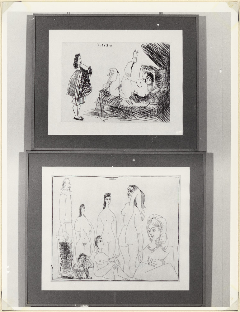 Gravures du 11 mai 1968 présentées à l'exposition "Picasso 347 gravures 1968" à la Galerie Louise Leiris, 18 décembre 1968 - 1er février 1969