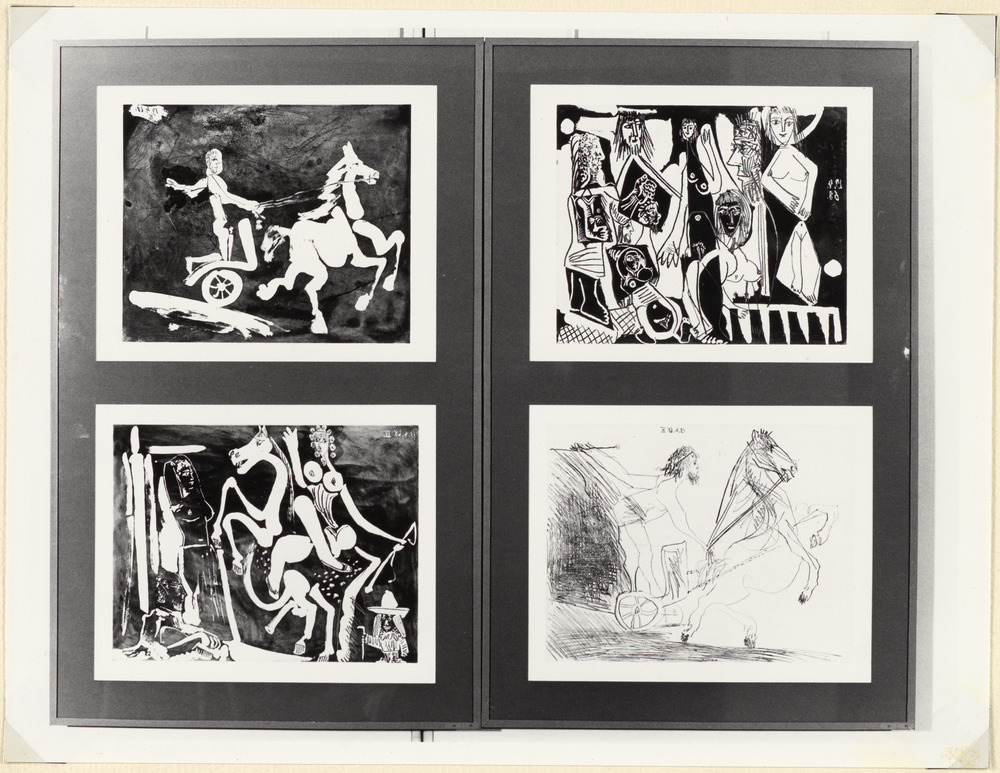 Gravures du 13 avril 1968 présentées à l'exposition "Picasso 347 gravures 1968" à la Galerie Louise Leiris, 18 décembre 1968 - 1er février 1969