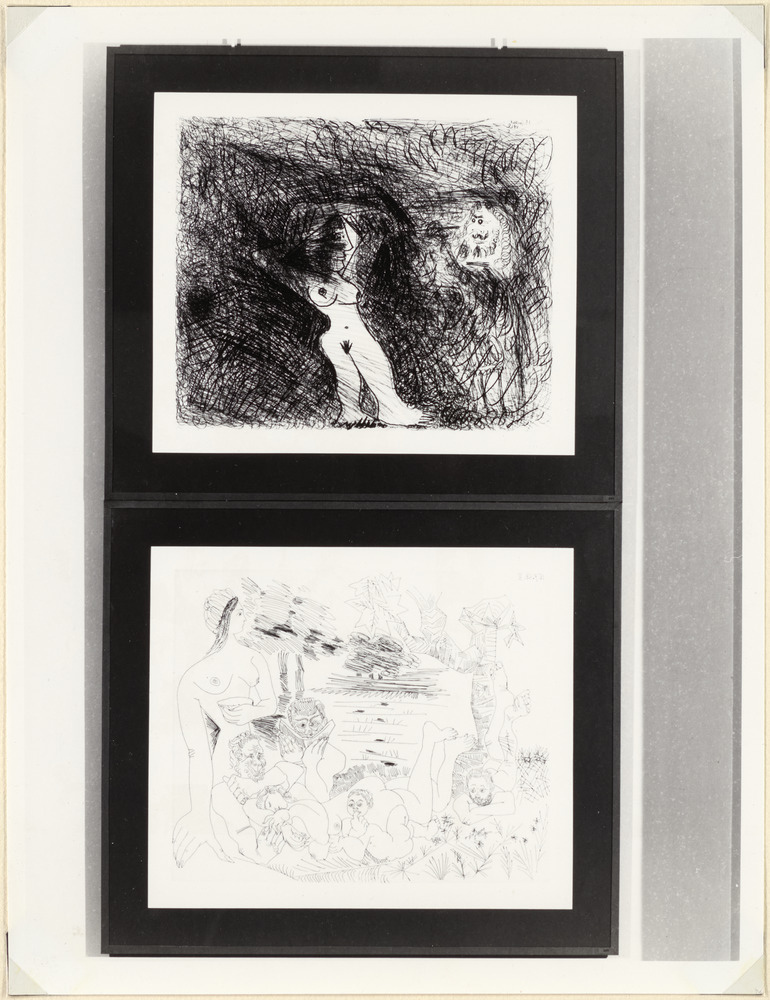 Gravures du 15 juillet 1968 présentées à l'exposition "Picasso 347 gravures 1968" à la Galerie Louise Leiris, 18 décembre 1968 - 1er février 1969