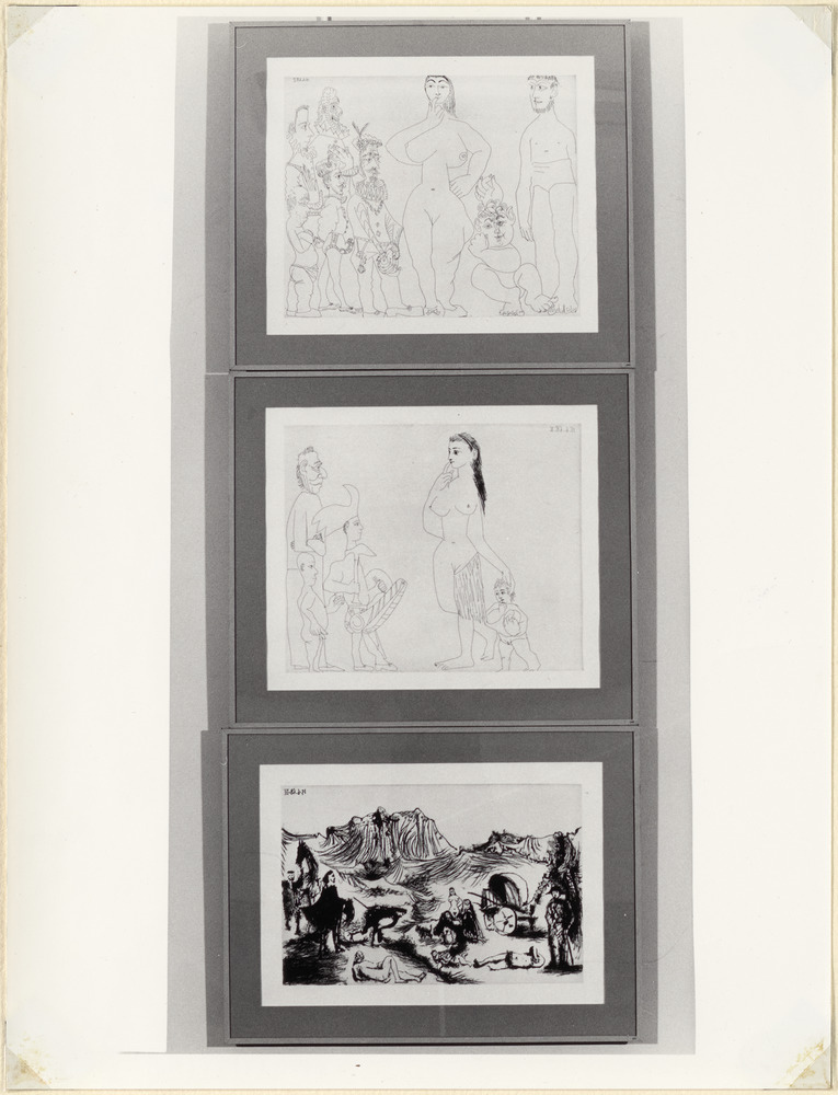 Gravures du 15 juin 1968 présentées à l'exposition "Picasso 347 gravures 1968" à la Galerie Louise Leiris, 18 décembre 1968 - 1er février 1969