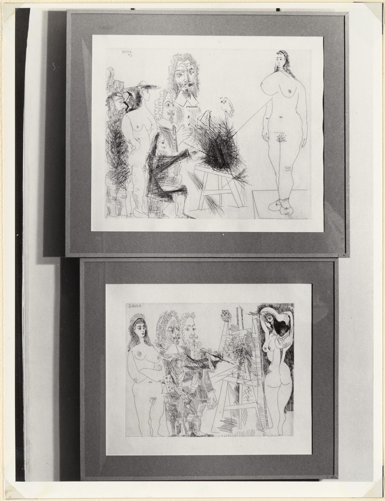 Gravures du 5 mai 1968 présentées à l'exposition "Picasso 347 gravures 1968" à la Galerie Louise Leiris, 18 décembre 1968 - 1er février 1969